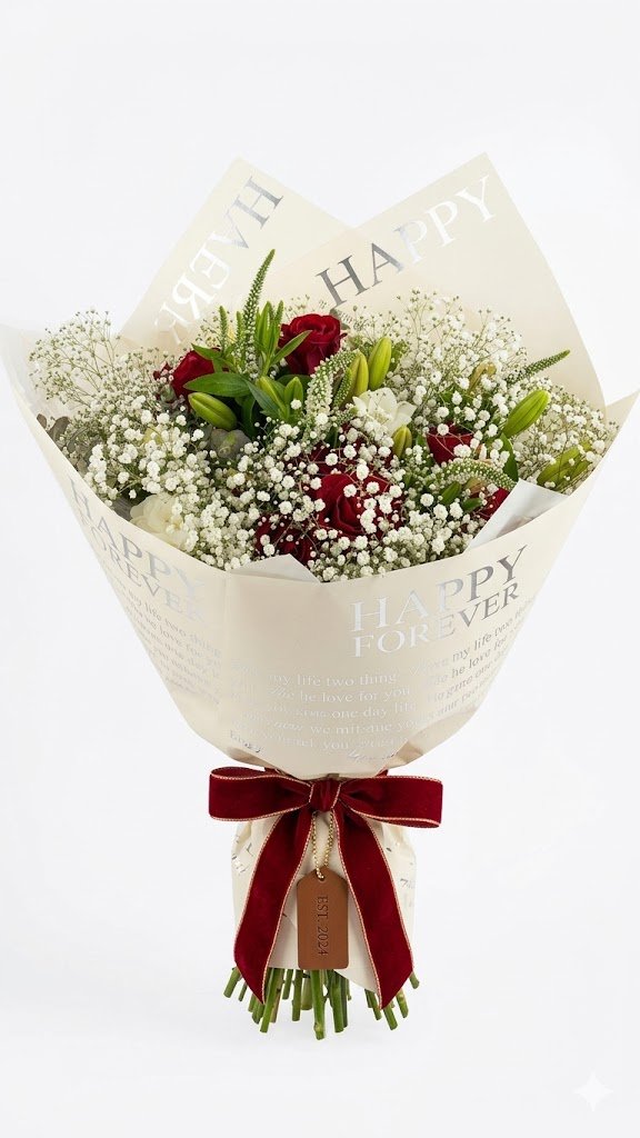 • ורדים אדומים קלאסיים: ורדי הפרימיום שלנו, בגוון בורדו עמוק, נבחרו בקפידה ומסמלים אהבה ותשוקה נצחית. חלקם פתוחים במלואם וחלקם סגורים, המבטיחים פריחה מתמשכת בבית.