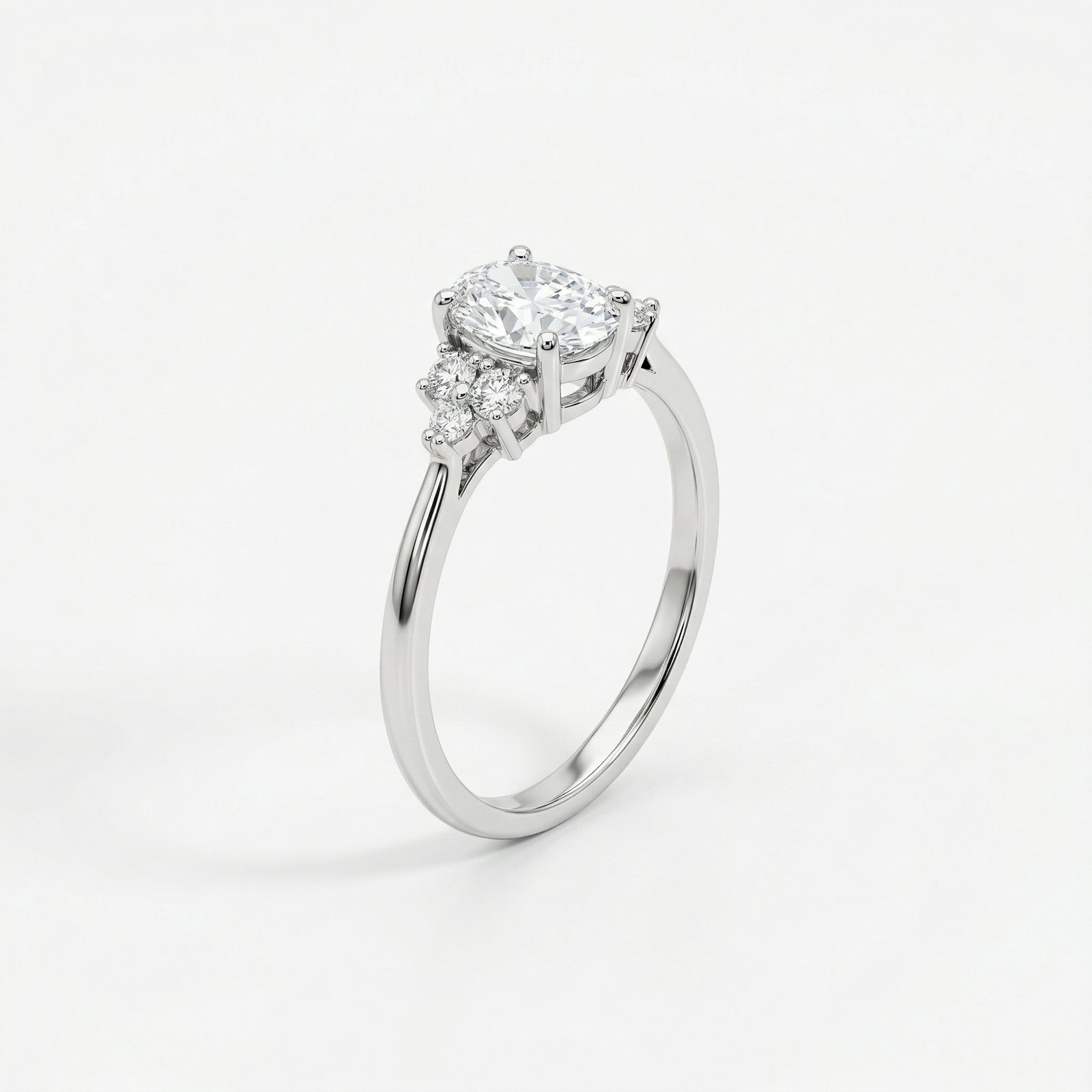 טבעת כסף 925 עם אבן זרקון אליפטי מרכזי ואבני זרקון בצדדים
