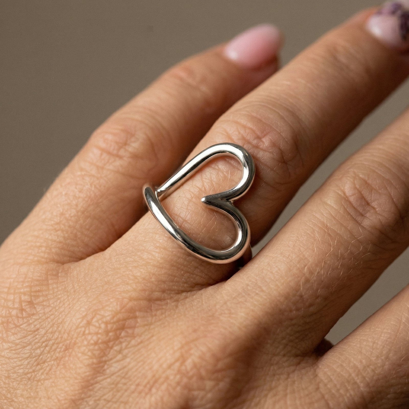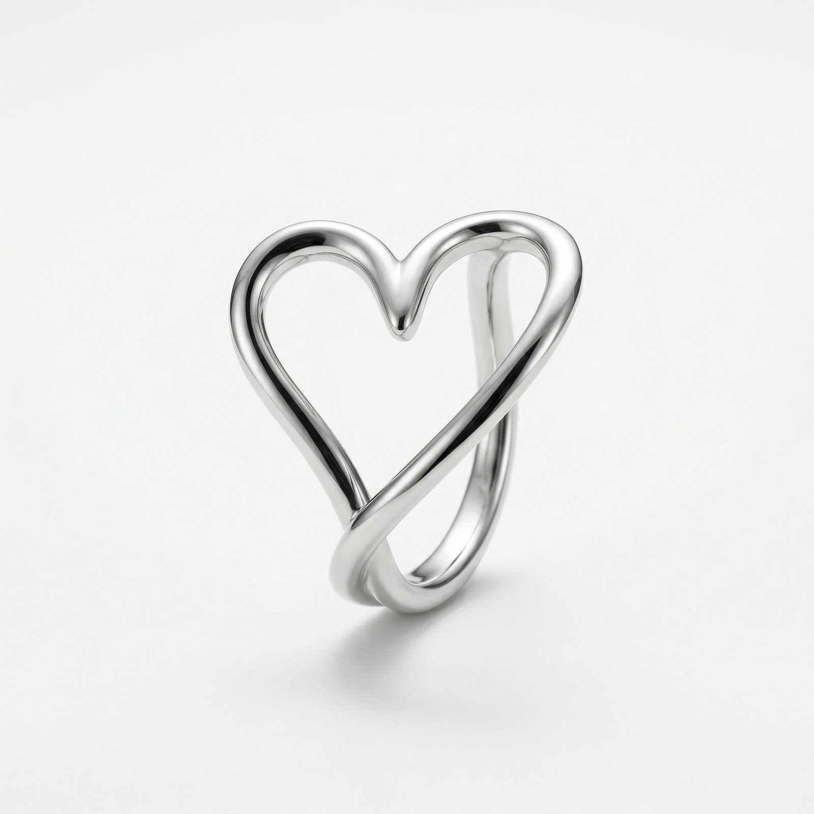 טבעת כסף 925 בעיצוב מודרני אמורפי לב