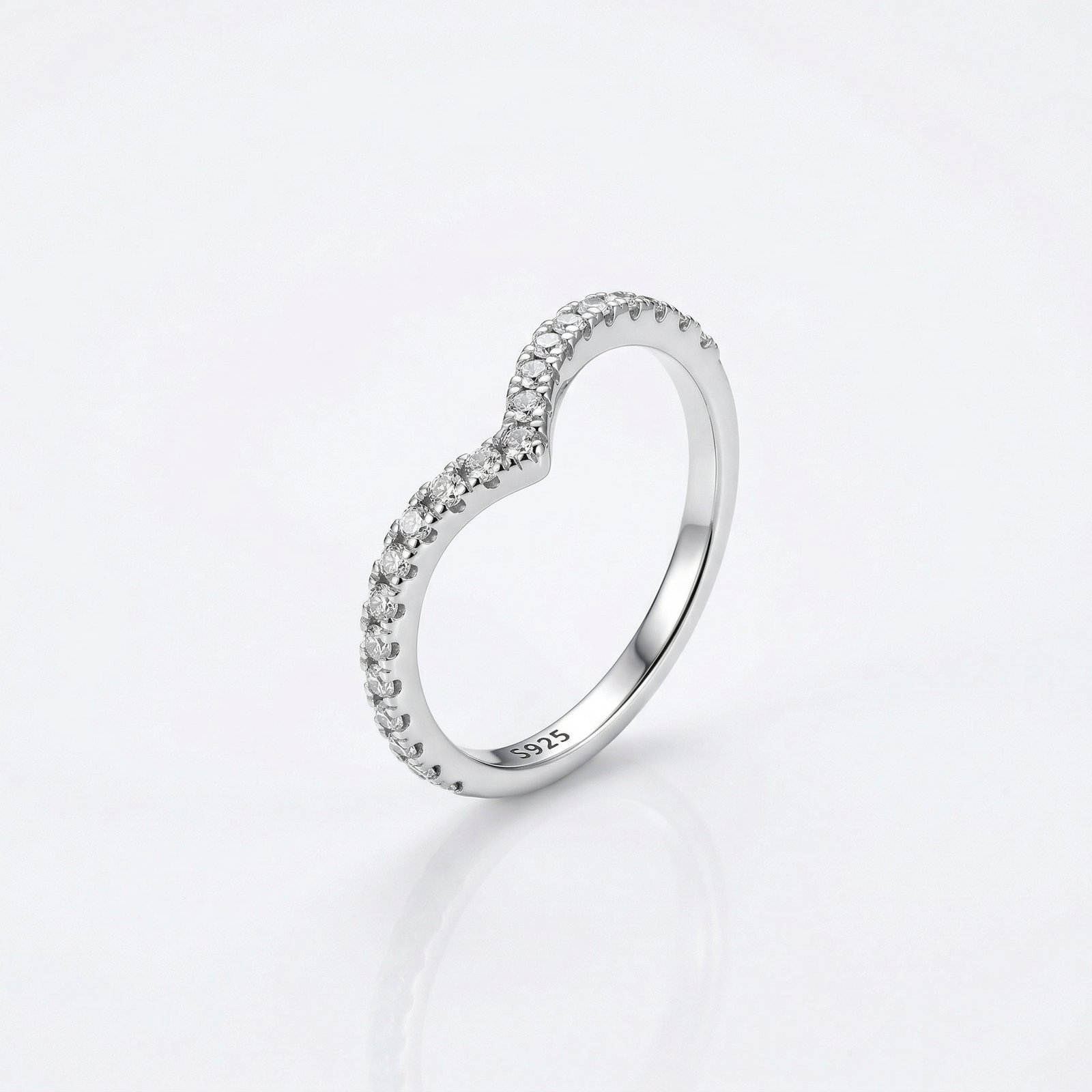 טבעת כסף 925 בצורה וי משובצת זרקונים.