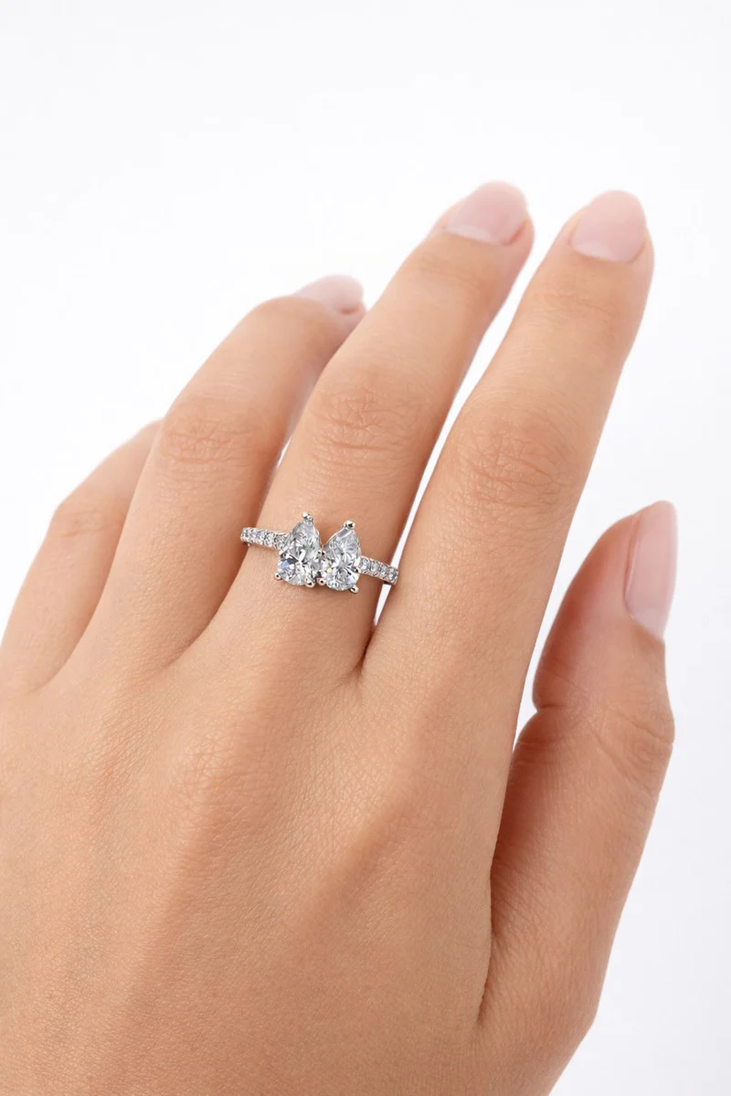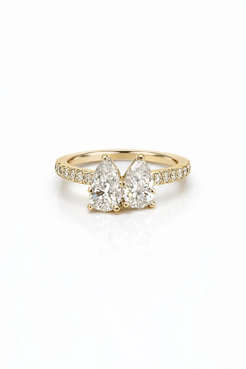טבעת יוקרתית ועדינה בזהב לבן, בעיצוב ייחודי עם שני יהלומי טיפות היוצרים מראה רומנטי ומרשים. השיבוץ המדויק והיהלומים בצדדים מעניקים ברק מושלם ואלגנטיות על-זמנית. בחירה מושלמת לאישה שמעריכה עיצוב יוקרתי, איכות וסטייל נקי זוג אחיות תאומות שלמות.