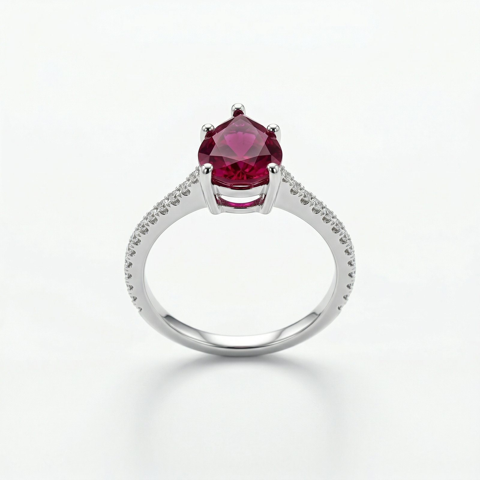 טבעת כסף 925 משובצת זרקונים עם אבן טיפה מרכזית אדומה