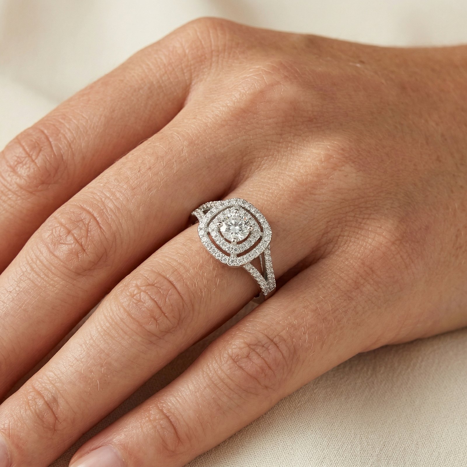 טבעת כסף 925 משובצת אבן זרקון מרכזי ושיבוץ זרקונים מסביב