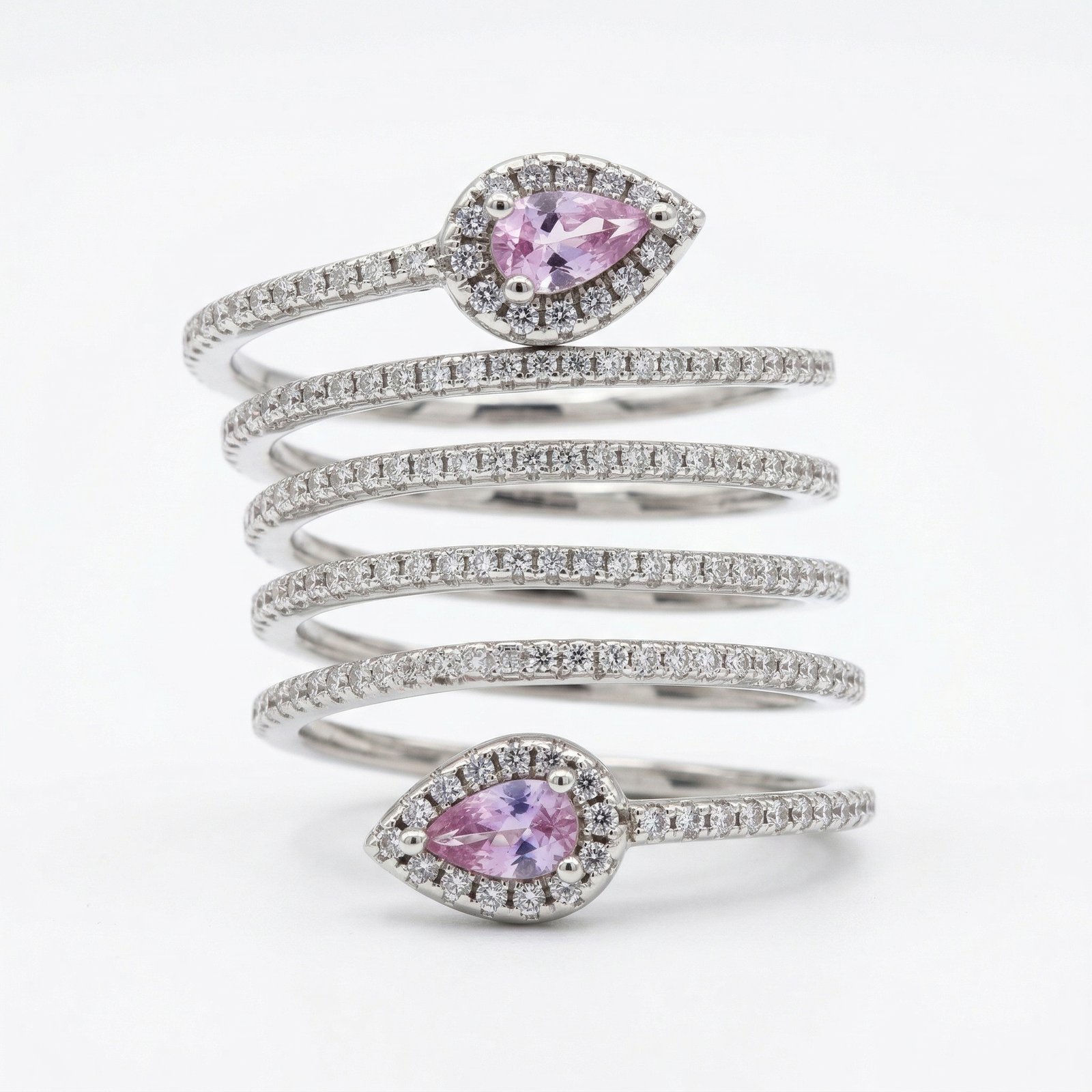 טבעת כסף 925 בצורת קפיץ , נחש משובץ זרקונים עם זרקון ורוד בכל קצה