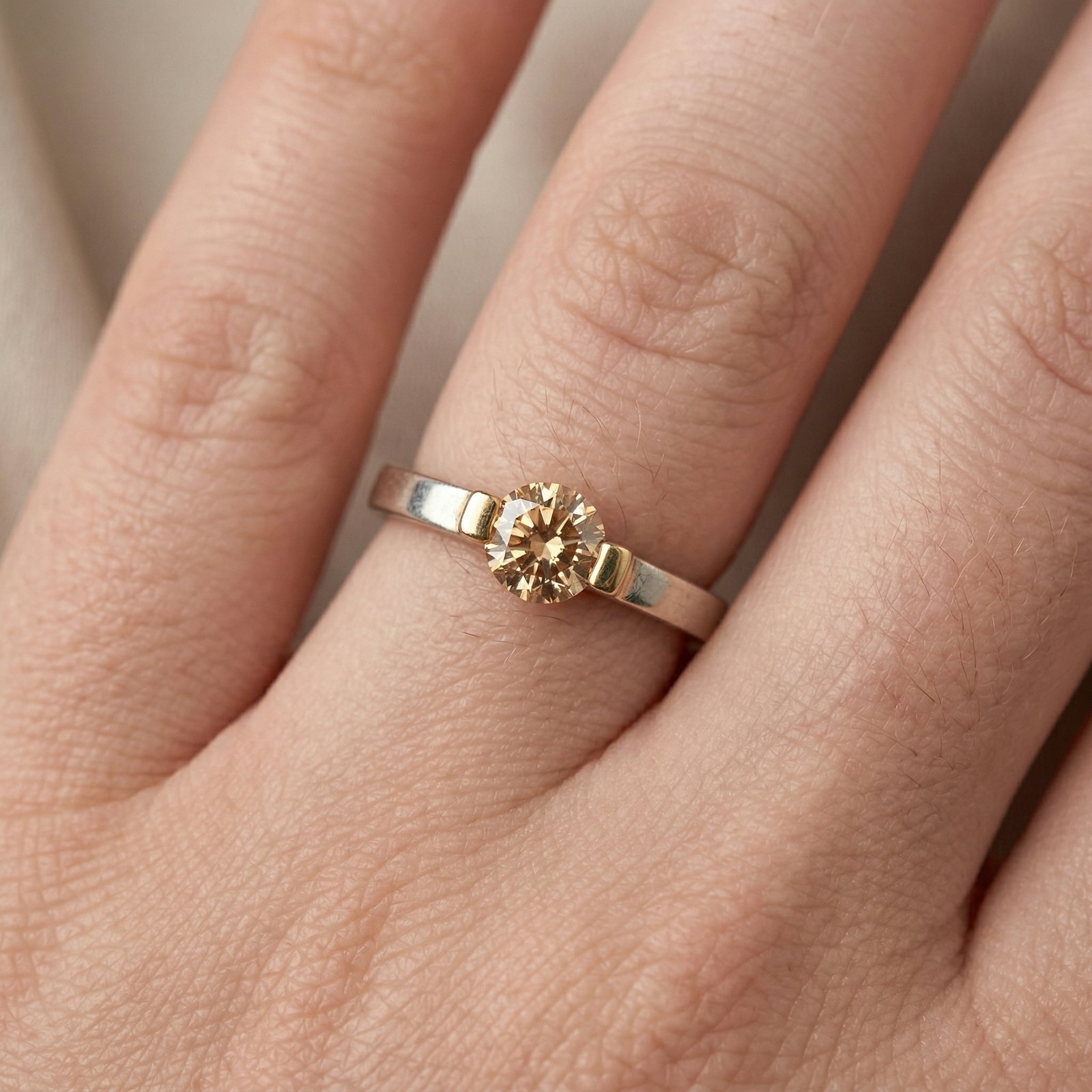 טבעת כסף 925 עם אבן זרקון סוליטר בגוון שמפניה