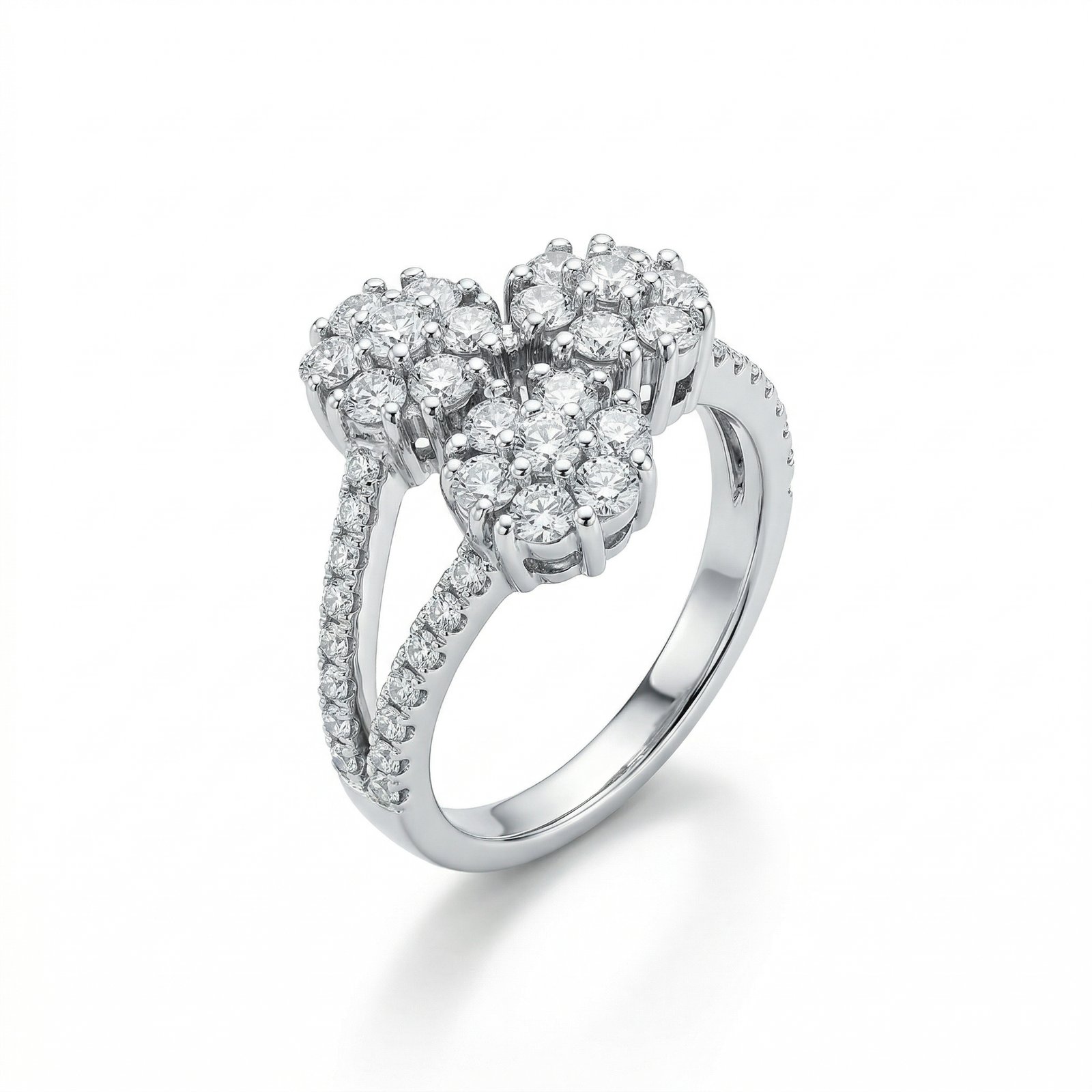 טבעת כסף 925 עם שיבוץ אבני זרקון בדוגמא של פרחים