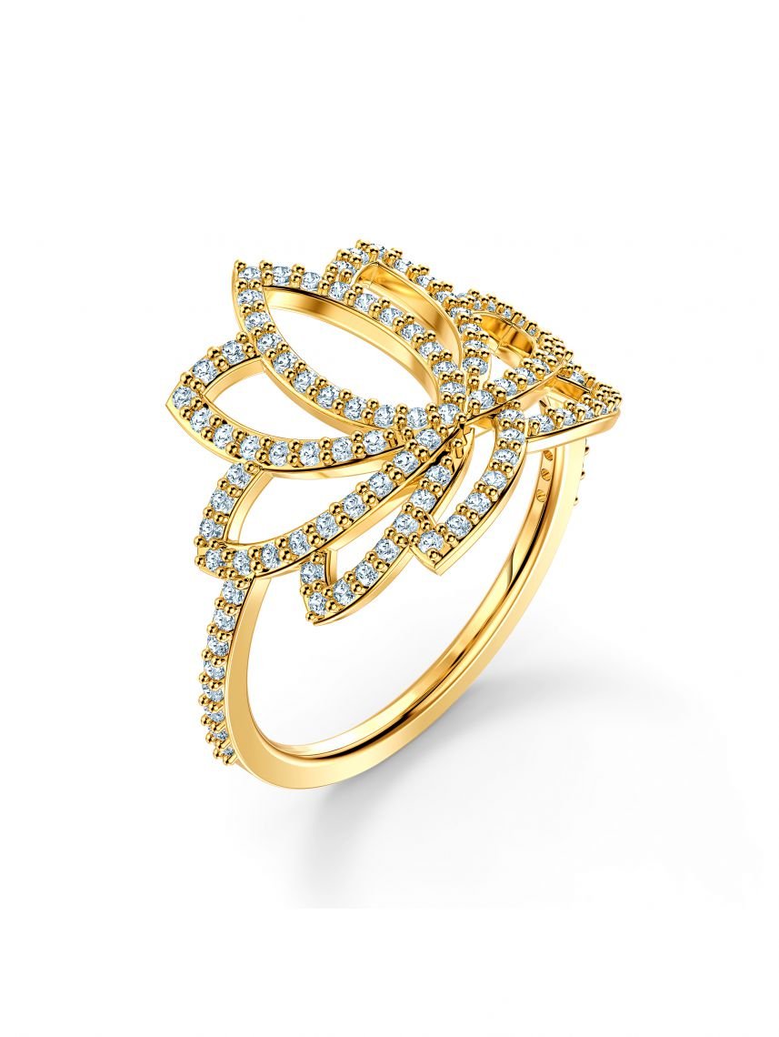 טבעת מבית המותג Swarovski מקולקציית "SWA Symbol". הטבעת כוללת קריסטלים שקופים, בציפוי זהב