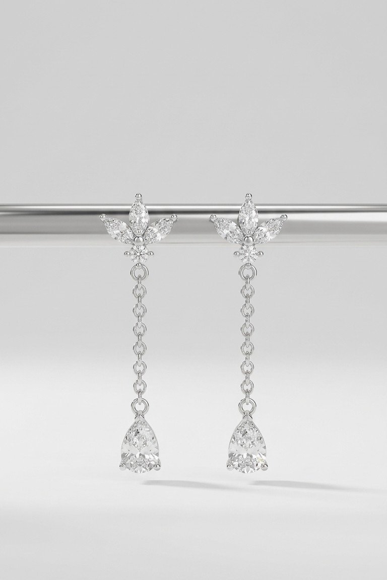 עגילי כסף 925 צמודים לאוזן עם אבני זרקון בצורת פרח לוטוס עם שרשרת ואבן זרקון טיפה תלוי