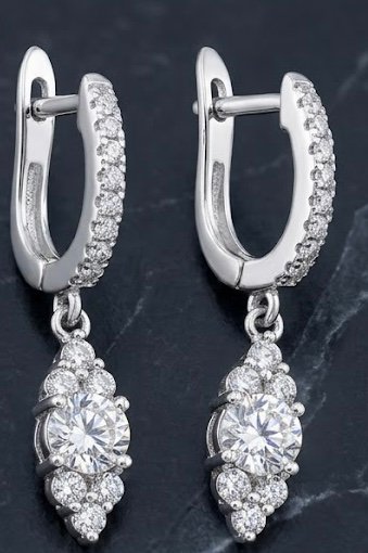 עגילי כסף 925 עם שיבוץ צמוד לאוזן של אבן זרקון מרכזית ו6 אבני זרקון בצדדים שיוצר מראה של מעויין מנצנץ. עם שרשרת לולאות יורדת עם זרקון בקצה
