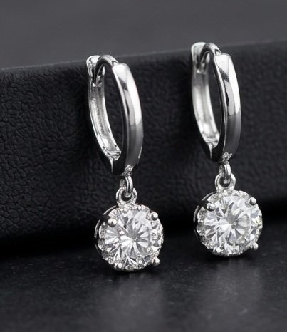 עגילי כסף 925 עם אבן זרקון מרכזית ואבני זרקון מסביב בצורה של פרח