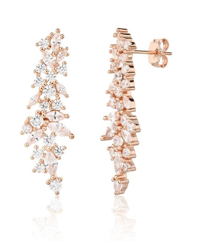 עגילי אופירה , עגילי כסף 925 , מצופה רוזגולד עם שיבוץ זרקונים יוקרתי ומיוחד .