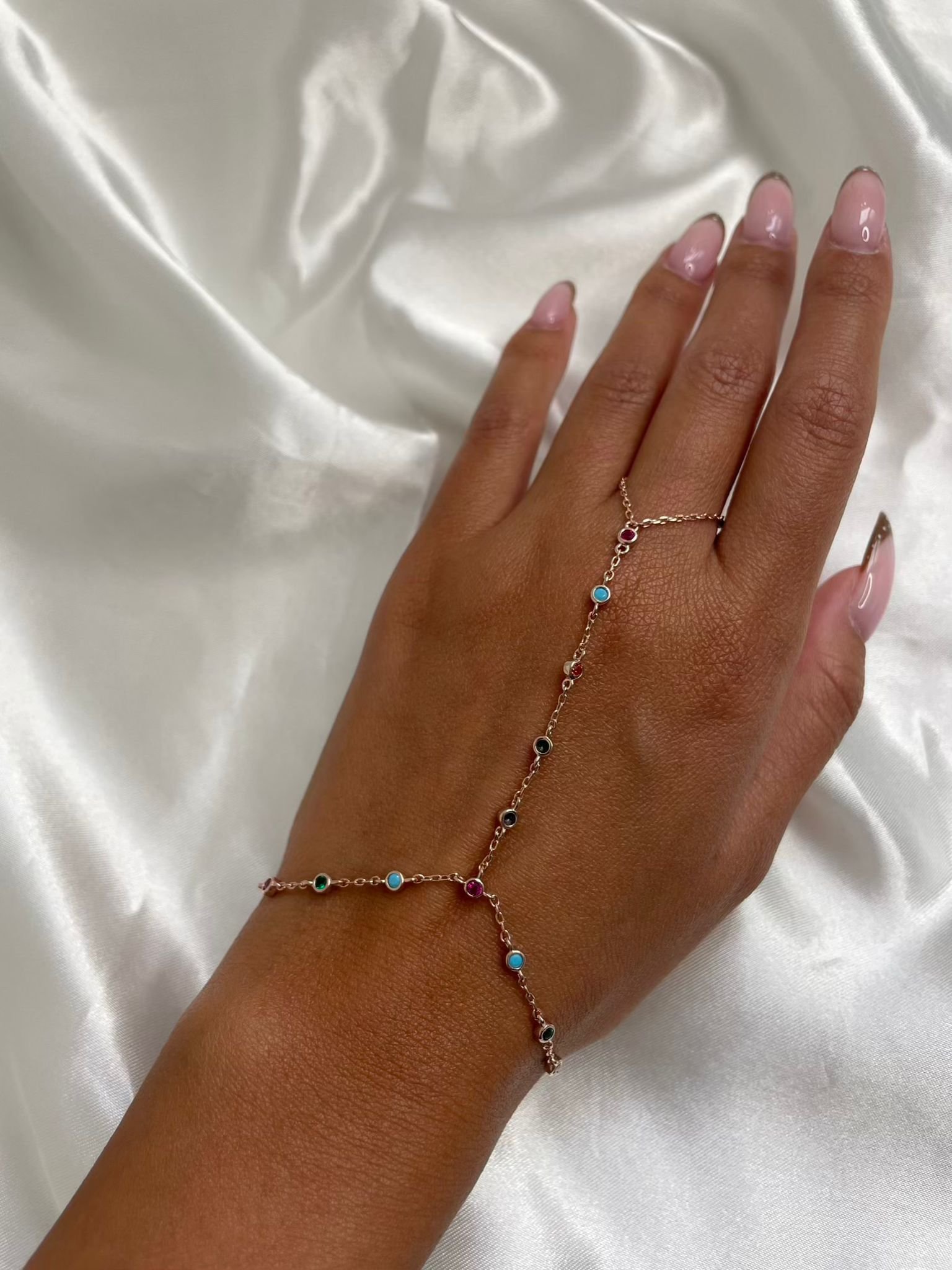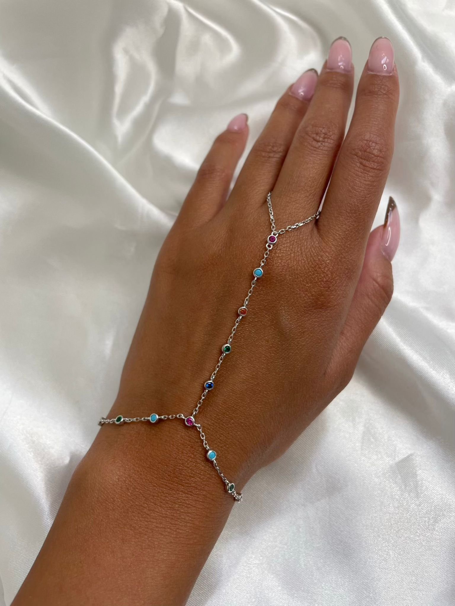 צמיד טבעת ג'אדי , כסף 925 , משובץ זרקונים צבעוניים.