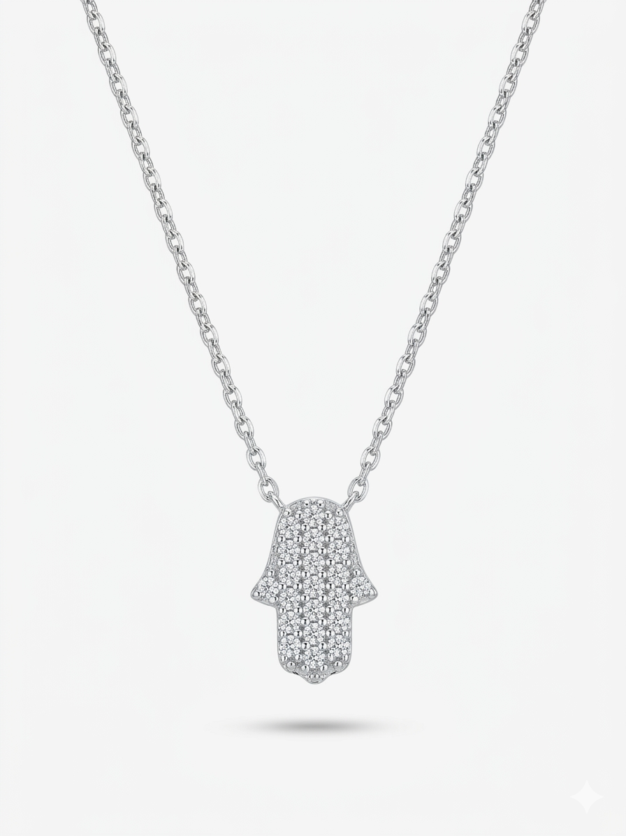 שרשרת כסף 925 עם חמסה משובץ זרקונים