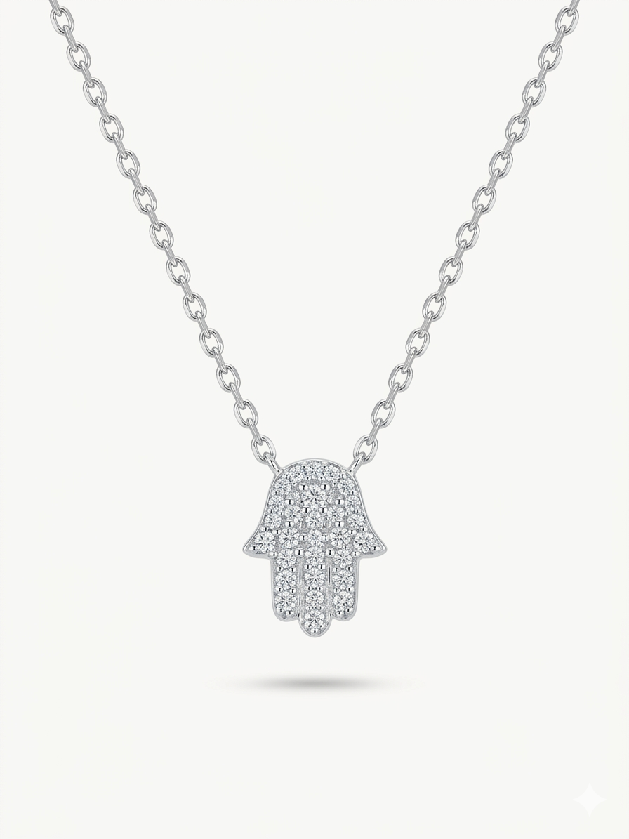 שרשרת כסף 925 עם חמסה משובץ זרקונים