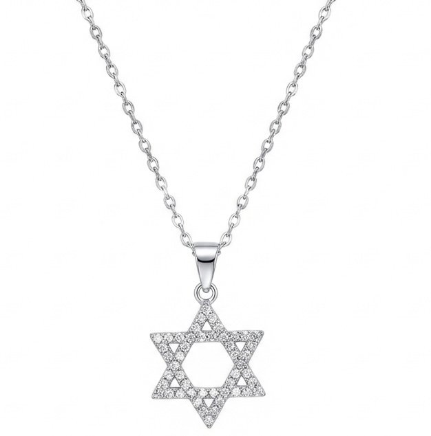 תליון כסף 925 , מגן דוד משובץ זרקונים , 16 מ"מ .