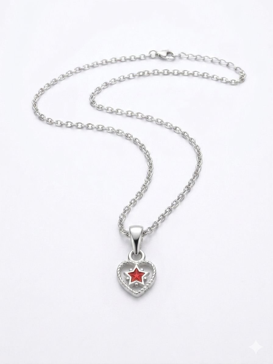 תליון כסף 925 בעיצוב לב קטן עם כוכב אדום במרכז בגודל 6 מ"מ