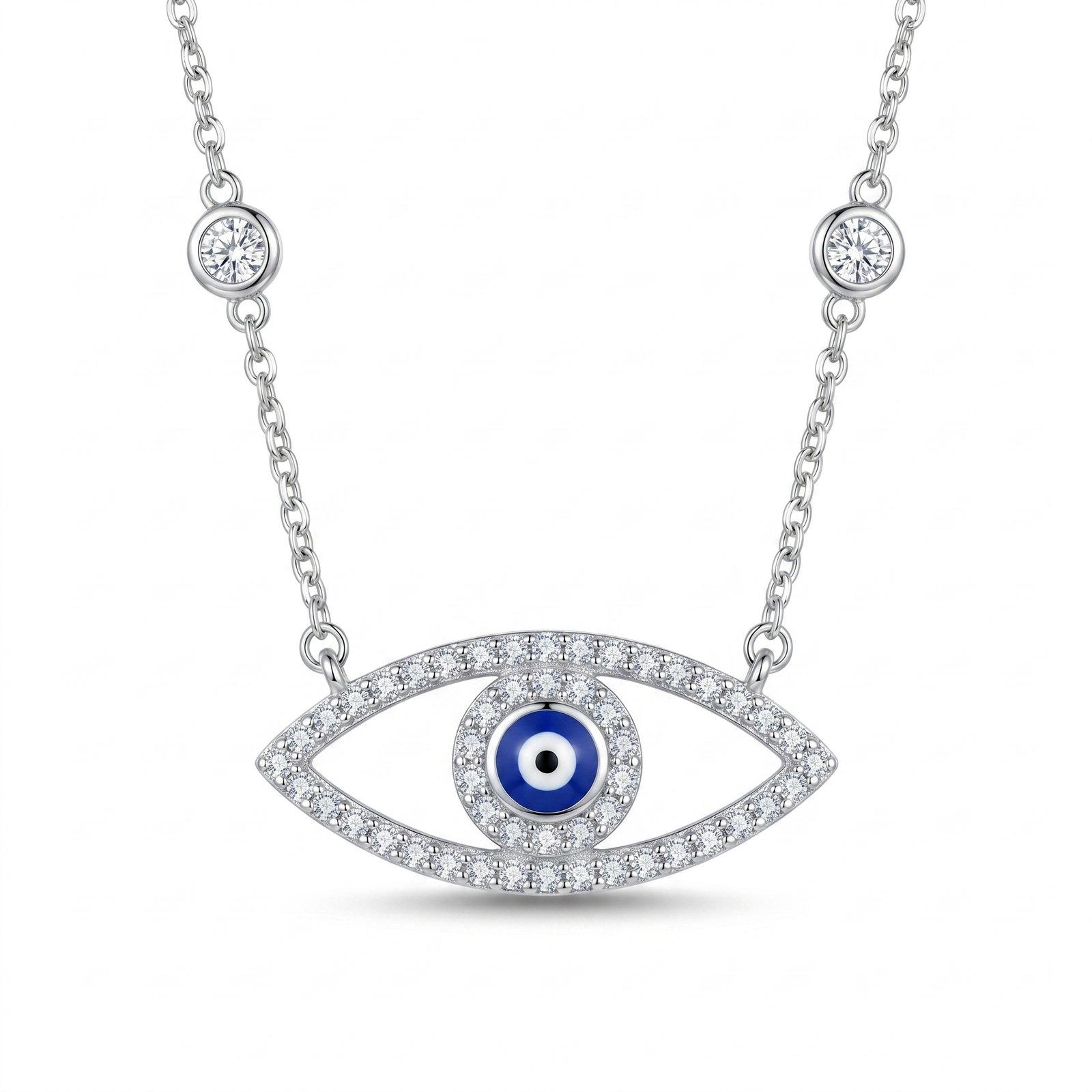 שרשרת כסף 925 עם עין ״נגד עין הרע״ בשיבוץ זרקונים ואמייל כחול