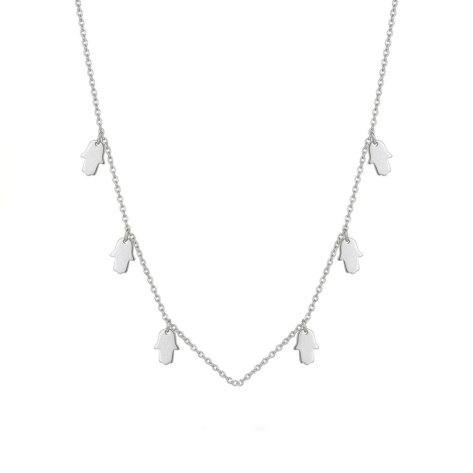 שרשרת כסף 925 עם שש חמסות קטנות מסביב. גודל כל תליון 10 מ"מ