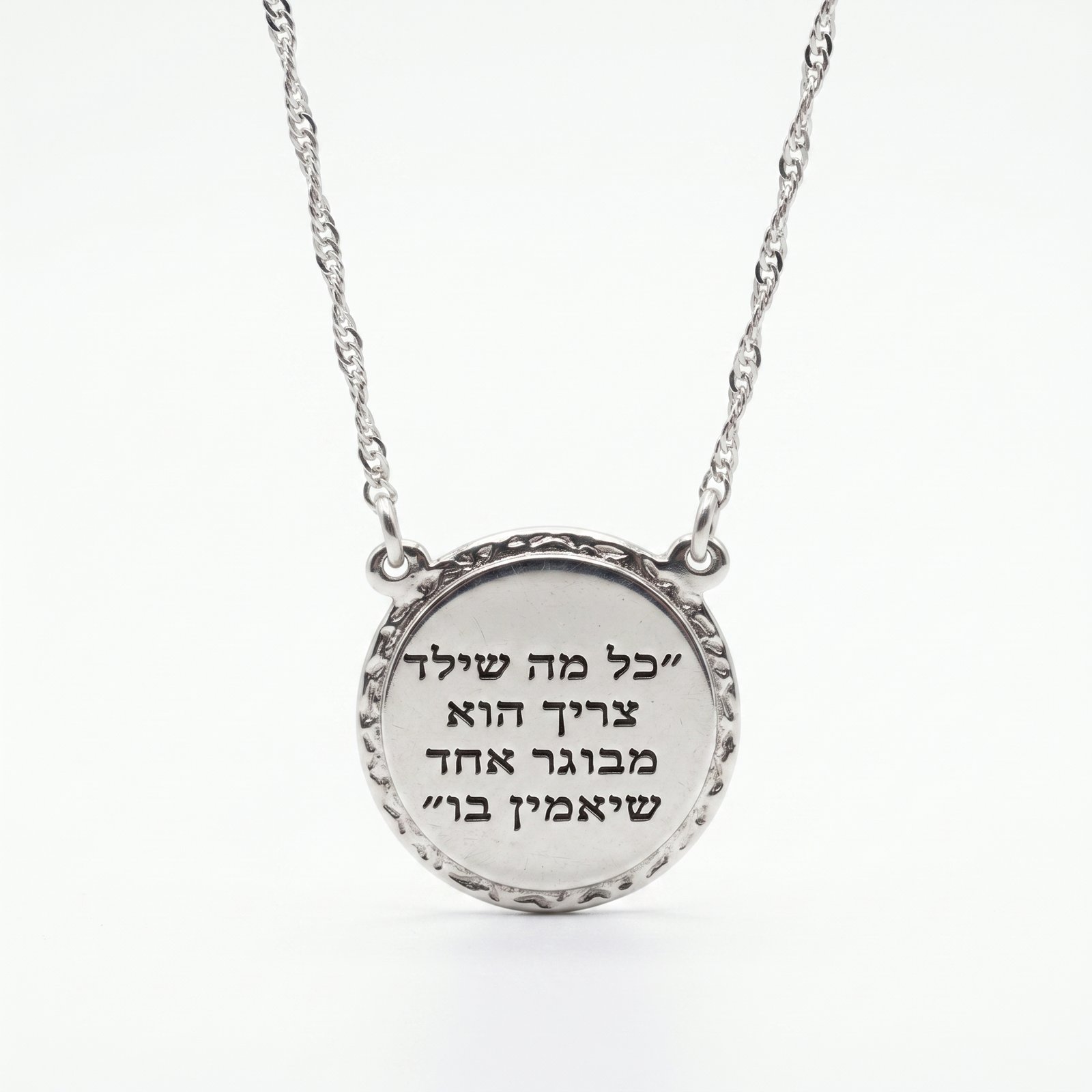 שרשרת כסף 925 עגול עם ריקוע וכיתוב ״כל מה שילד צריך הוא מבוגר אחד שיאמין לו״