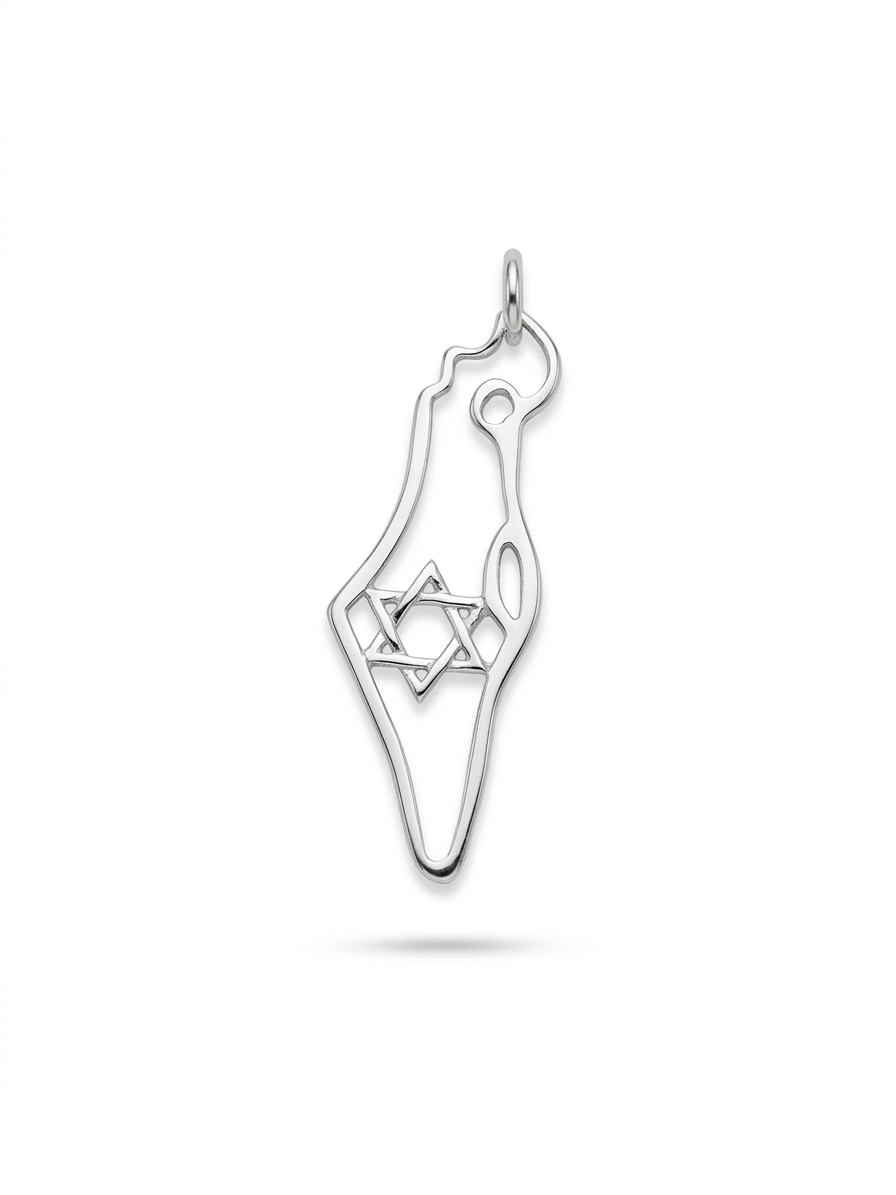 תליון כסף 925 בעיצוב ארץ ישראל עם מגן דוד באמצע