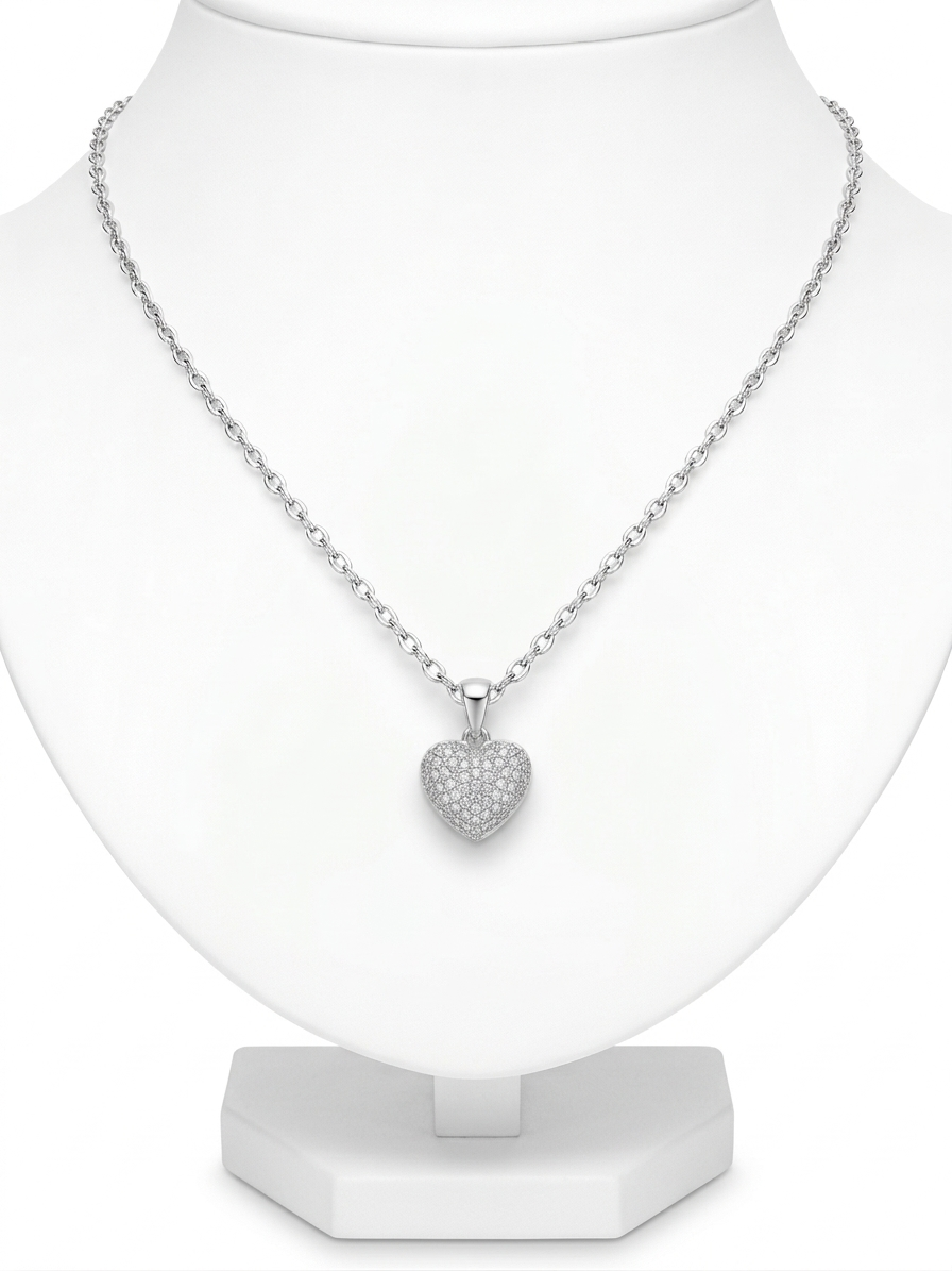 תליון כסף 925 בעיצוב לב עם נפח משובץ זרקונים