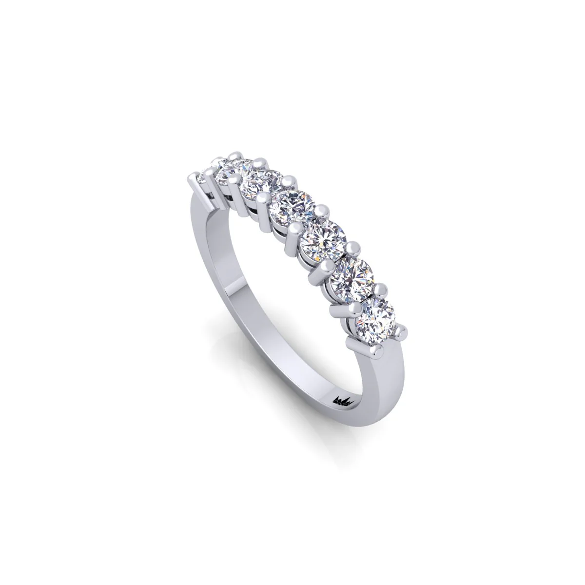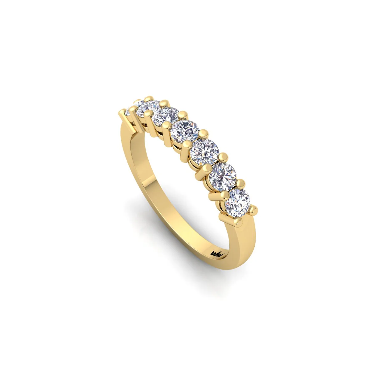 טבעת חצי איטרנטי אלגנטית בזהב, עם 7 יהלומים שיבוץ עדין לאורך הטבעת. שילוב מושלם של יוקרה, עדינות ונצחיות – בחירה קלאסית שמדגישה אהבה אמיתית וסטייל על־זמני